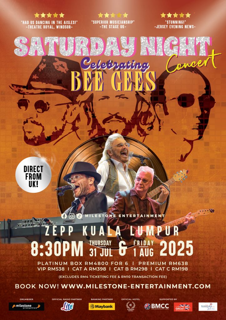 Get ready to relive the timeless magic of the Bee Gees when the internationally acclaimed Saturday Night – Celebrating Bee Gees take the stage in Kuala Lumpur for the very first time in Asia this 31 July and 1 August 2025 at Zepp Kuala Lumpur.